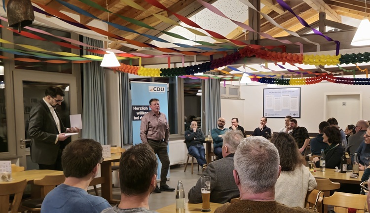 Der CDU-Kandidat für die Bundestagswahl Wolfgang Dahler war am 29.01.2025 bei uns im Sportheim der SF Schwendi zu Gast. Er stellte sich den anwesenden Bürgerinnen und Bürgern aus Schwendi und Wain vor und erklärte was für ihn in unserem Wahlkreis Biberach und für die Entwicklung in Deutschland in den kommenden Jahren wichtig ist. Er setzt sich für ein wirtschaftliches Wachstum ein. Denn ohne eine gute wirtschaftliche Entwicklung, gibt es keine Einnahmen und somit kann auch nicht viel investiert werden. Natürlich war auch aus aktuellem Anlass das Thema „Migration steuern“ ein großer und wichtiger Themenpunkt an diesem Abend. Auch bei der anschliesenden Fragerunde, waren unter anderem die vorhin erwähnten Punkte nochmals dabei und die weiteren wichtigen Punkte Rentenentwicklung und die allgemein Bildungsentwicklung. Nach etwas mehr als 2 Stunden wurde die Veranstaltung dann beendet und es folgte noch an den Tischen in gemütlicher Runde ein Austausch unter allen Anwesenden statt.