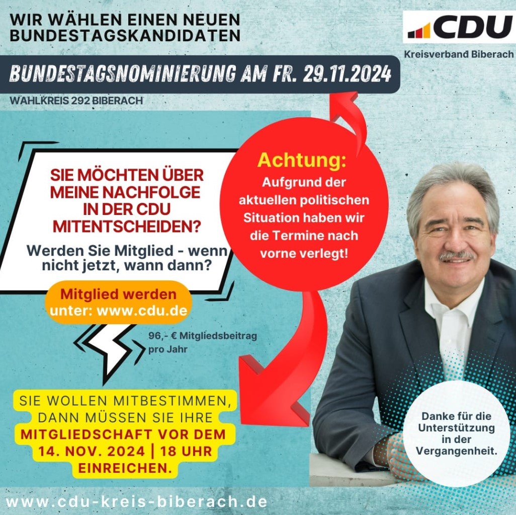 Wir wählen am 29.11.2024 in der Nominierungsversammlung einen neuen Bundestagskandidaten
