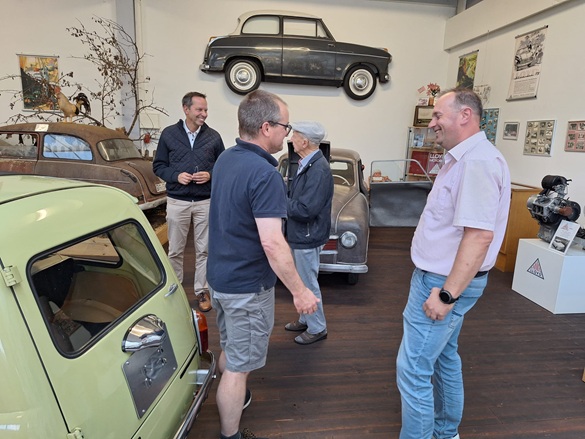 Am 01.08.2025 hatten wir unser traditionelles Sommerfest! In diesem Jahr schauten wir uns das Lloyd-Museum in Großschafhausen an. Herr Tim Neugard erklärte uns die alte Automarke aus Bremen. Auch Herr Hans Rapp aus Schemmerhofen war zu Besuch, da er sich in seiner Lehrzeit und danach mit den Lloyd-Fahrzeugen beschäftigt hat. Die fundierten Beiträge von Herrn Rapp und Herrn Neugard waren sehr informativ und es war eine tolle Führung durch die Ausstellung. Speziell die Erläuterungen zum Lloyd 300, dem bekannten "Leukoplastbomnber". Im Anschluss gingen wir weiter in die Pizzeria "La Puglia" nach Orsenhausen. Zusammen mit Herrn Dörflinger und Herrn Dahler liesen wir hier den Abend in gemütlicher Runde und interessanten Unterhaltungen ausklingen.
