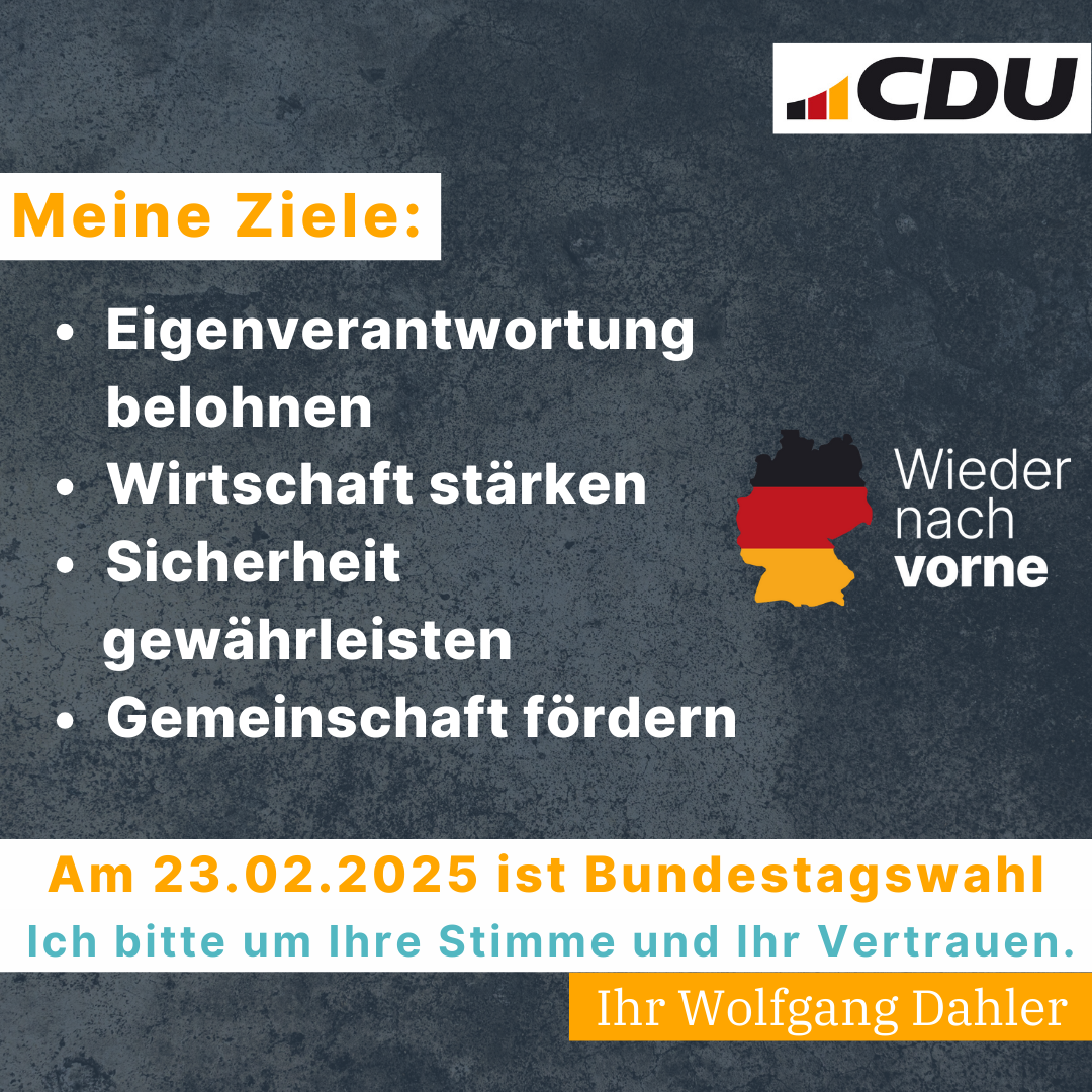 Deutschland braucht den Politikwechsel. Herr Wolfgang Dahler stellt sich den Gemeinden Schwendi und Wain vor.